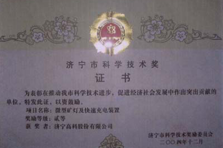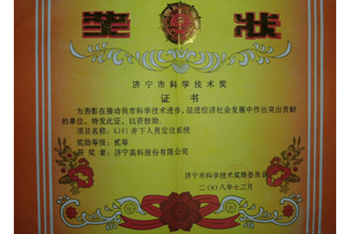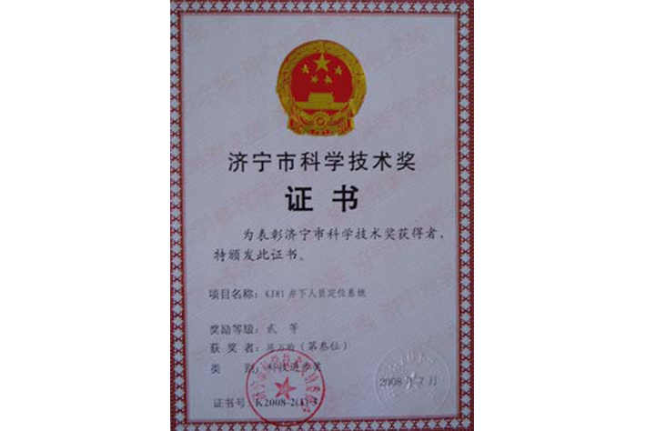 济宁市科学技术奖证书