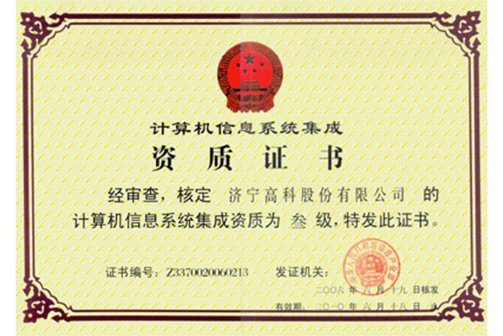 计算机信息系统集成资质证书